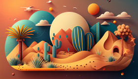 Colorful Cartoon Illustration of Rocky Mountain Desert Generative AI Illustration